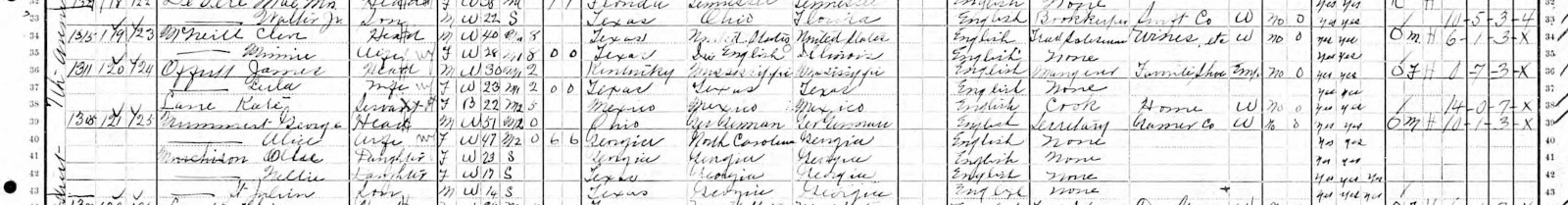 1910 Federal Census; Fort Worth, Tarrant County, TX. Household of James Offutt