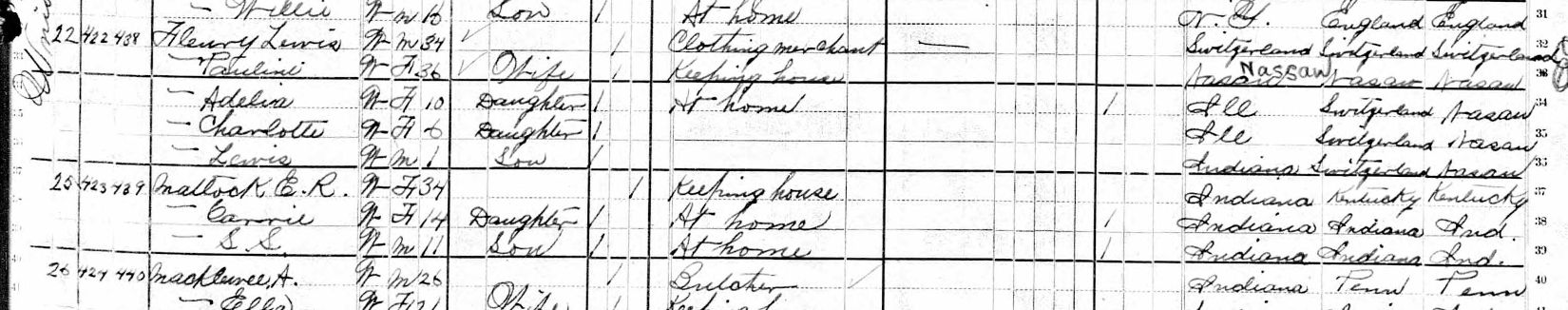 1880 Census Kokomo, Howard County, IN; Household of E. R. Matlock