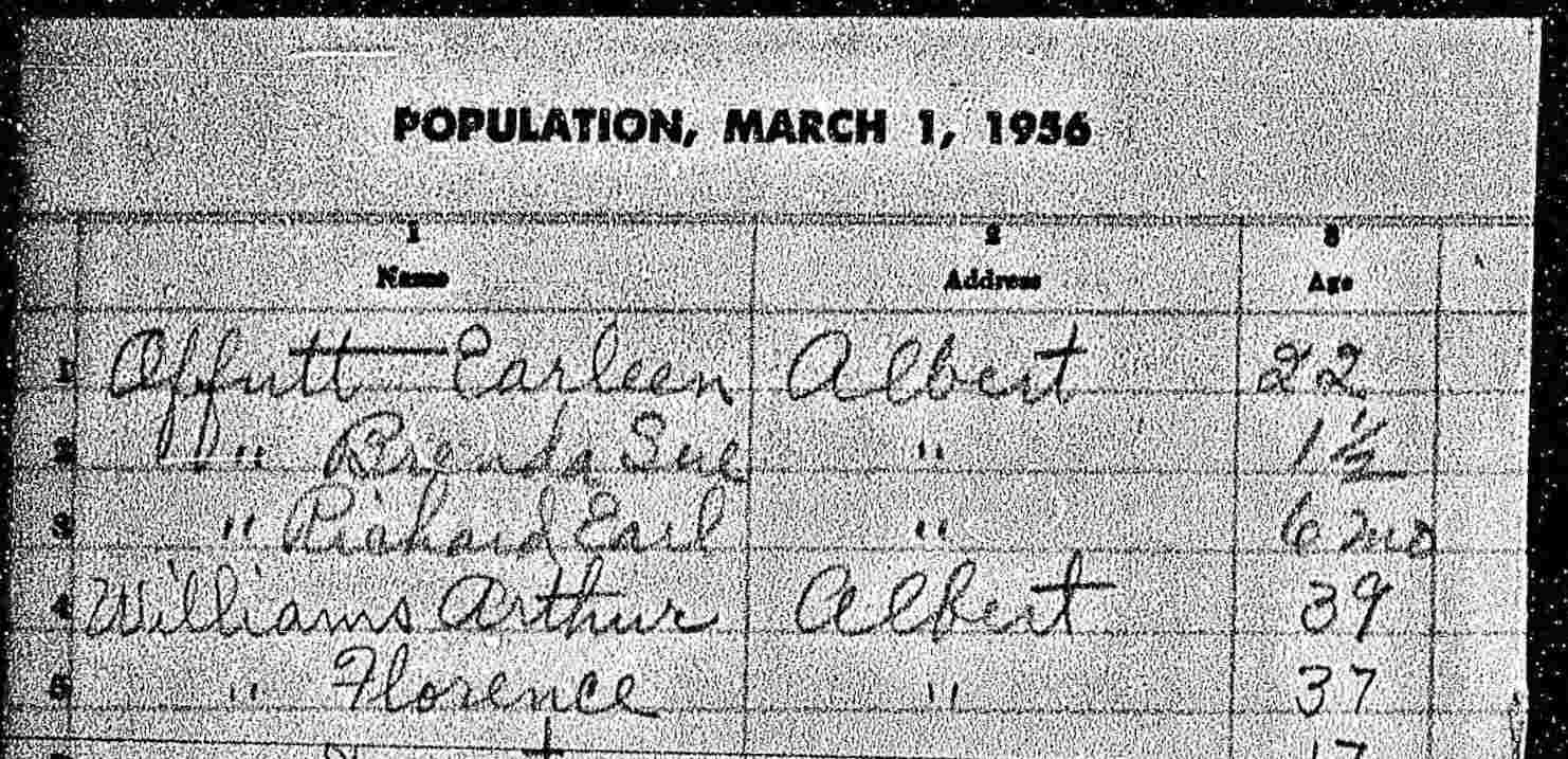 1956 Kansas Board of Agriculture Census of Albert, Kansas
