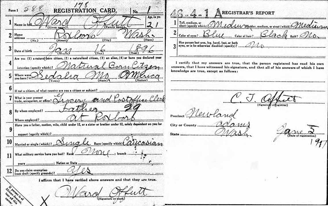 World War I Draft Registration; Ward Offutt