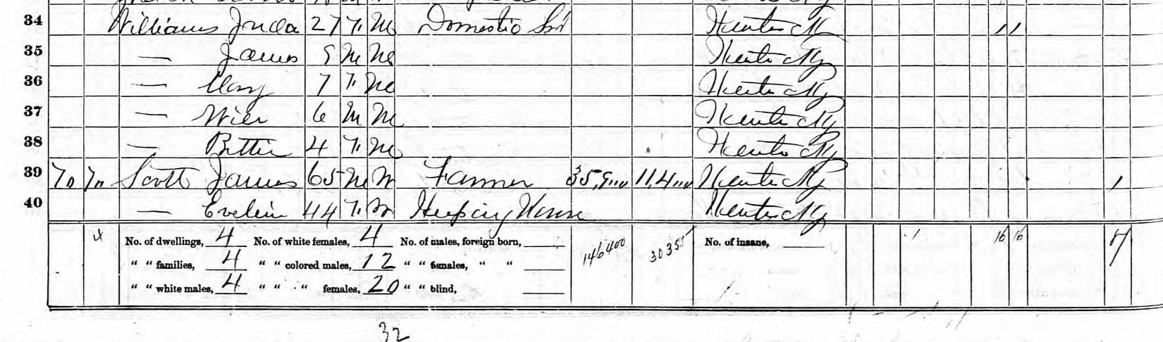 1870 Federal Census; North Middleton Precinct, Bourbon County, KY. Household of James Scott, page 14