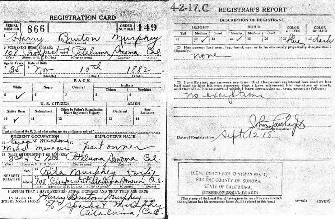 World War I Draft Registration; Harry Bruton Murphey