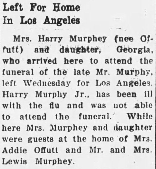 Article about Mrs. Harry Murphey leaving for Los Angeles
