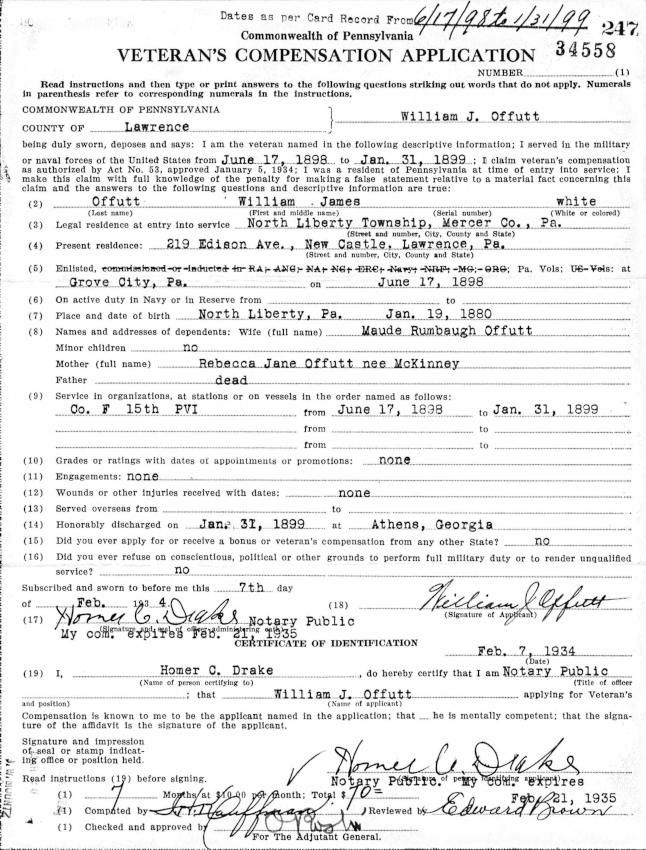 Compensation Application for William James Offutt