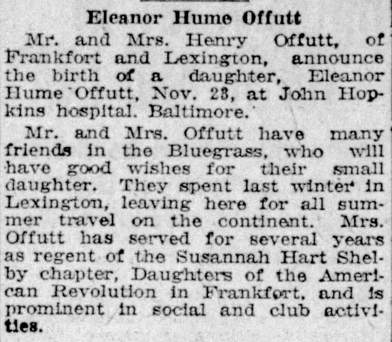 Printed in the Friday, November 27, 1925 edition of The Lexington Leader on page 2 of the Second Section