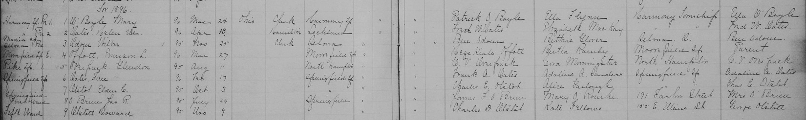 Clark County Ohio Probate Court Birth Register Volume 3, pages 352-353