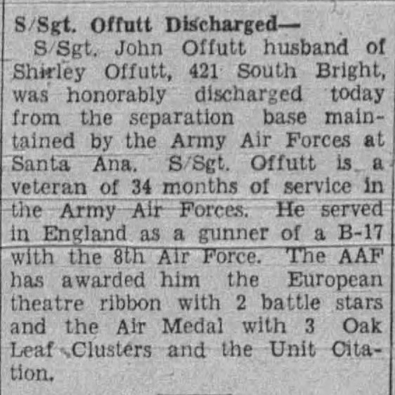 Printed in the Wednesday, October 10, 1945 edition of The Whittier News, on page 4