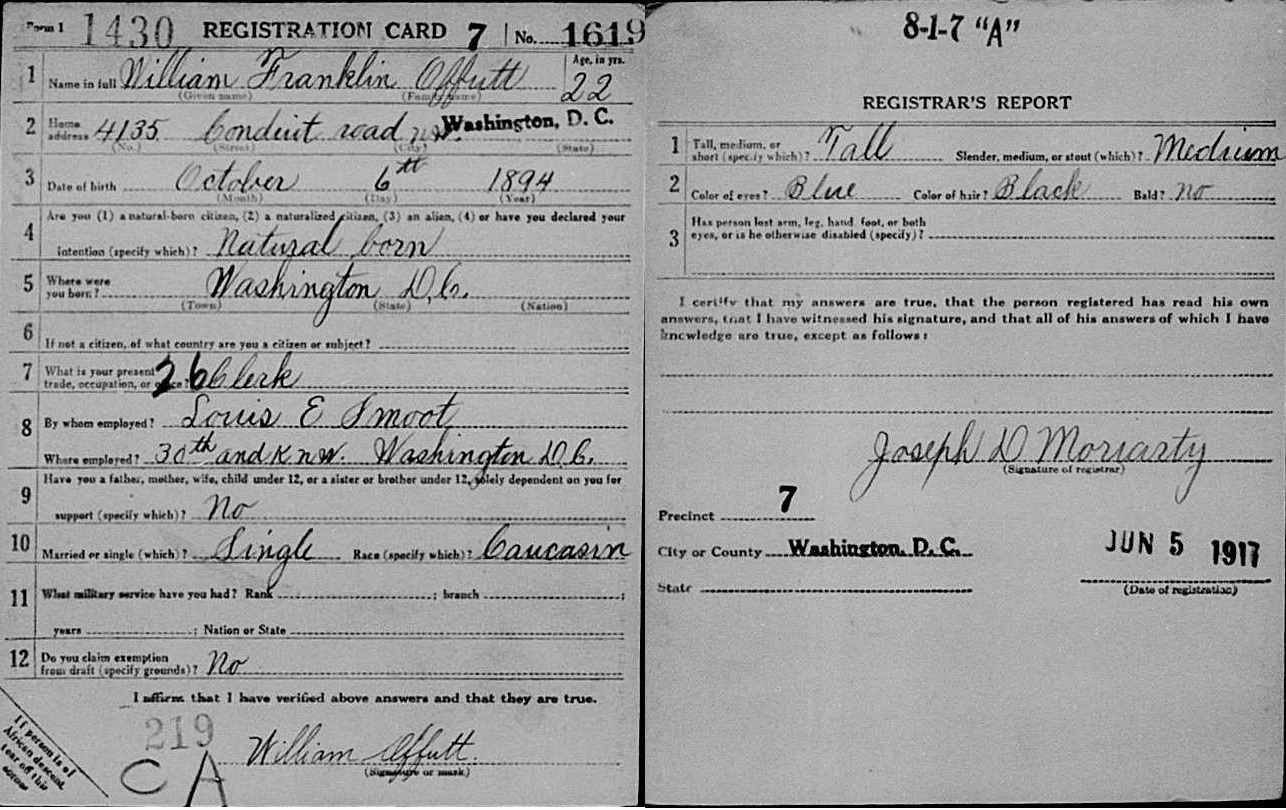 World War I Draft Registration; William Franklin Offutt