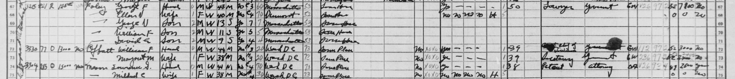 1940 Federal Census; Police Precinct 8, Washington, DC. Household of William F. Offutt (In Census it appears to be written as Offatt)