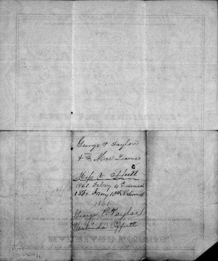 Back side of Marriage License and Marriage Certificate for Verlinda Offutt & George P. Taylor