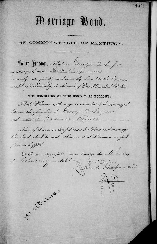 Marriage Bond for Verlinda Offutt & George P. Taylor