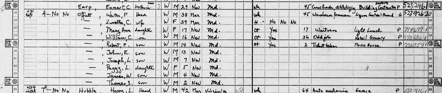 1950 Federal Census for Gaithersburg, Montgomery County, MD