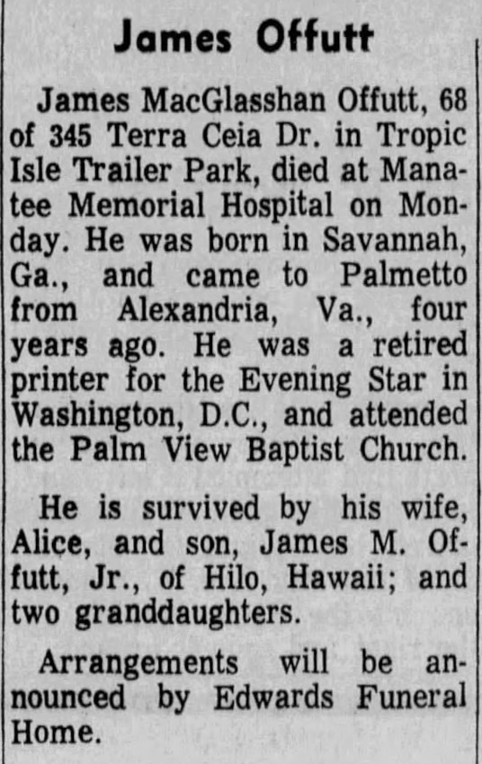 Printed in the Tuesday, June 29, 1971 edition of The Bradenton Herald on page 2-B