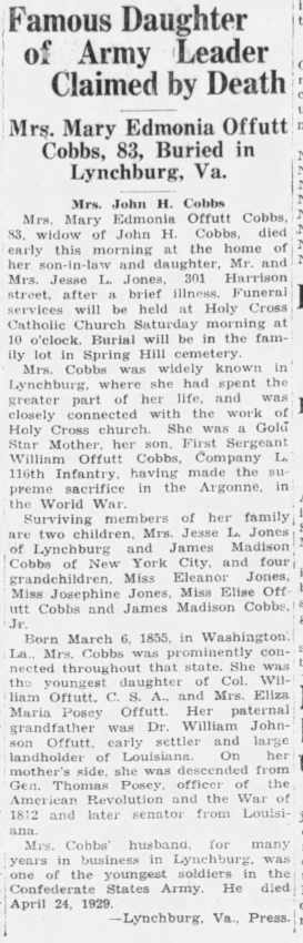 Obituary for Mrs. Mary Edmonia Offutt Cobbs