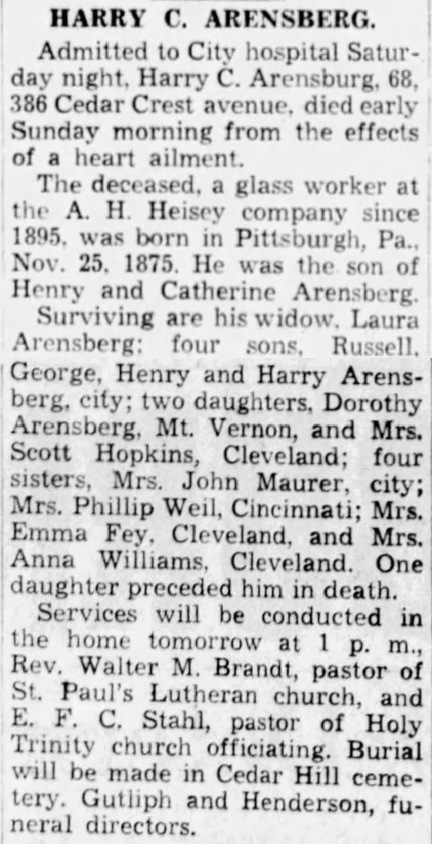Obituary for Harry C. Arensberg
