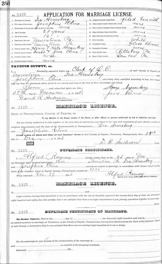 Record for Ira Arnesberg (sic) & Josaphine (sic) Cline