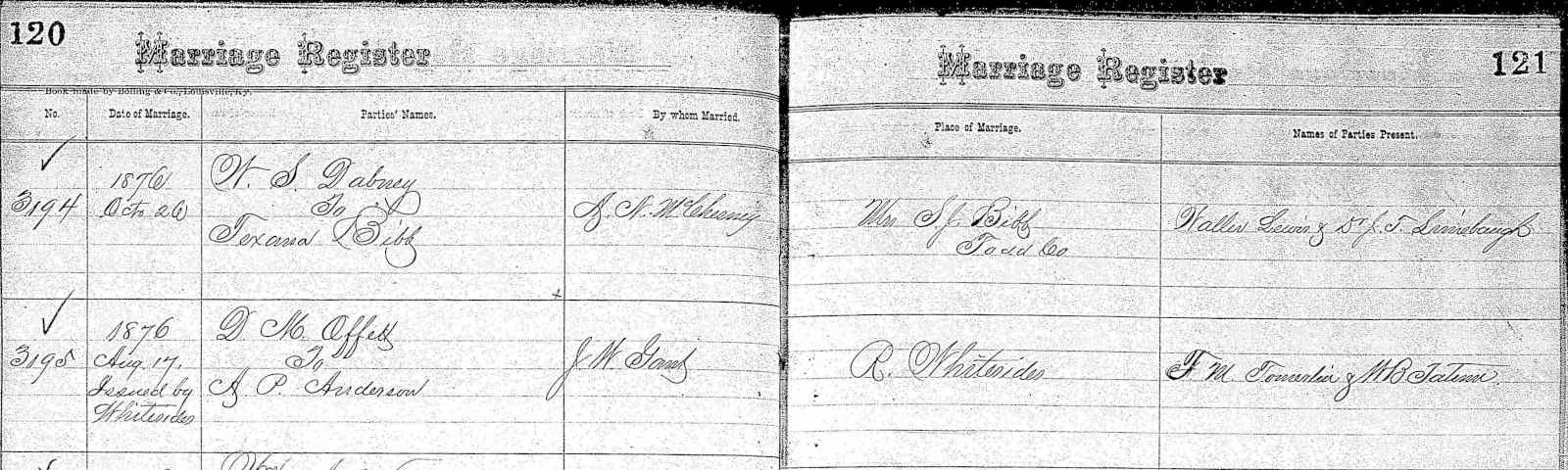 Marriage of D. M. Offett (sic) and A. P. Anderson