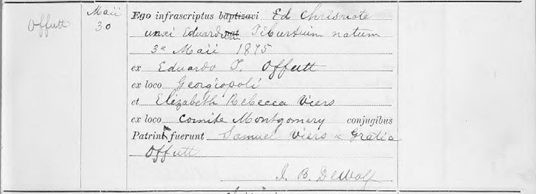 Holy Trinity Church Baptism Register; 1871 - 1880. Page 246, Edward T. Offutt, May 30, 1875