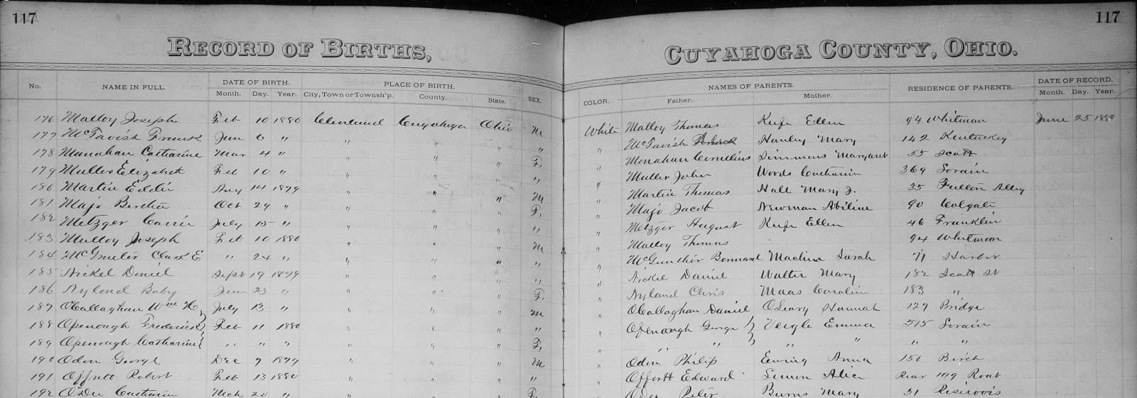 Cuyahoga County Ohiio Birth Register, Volume 4, page 117