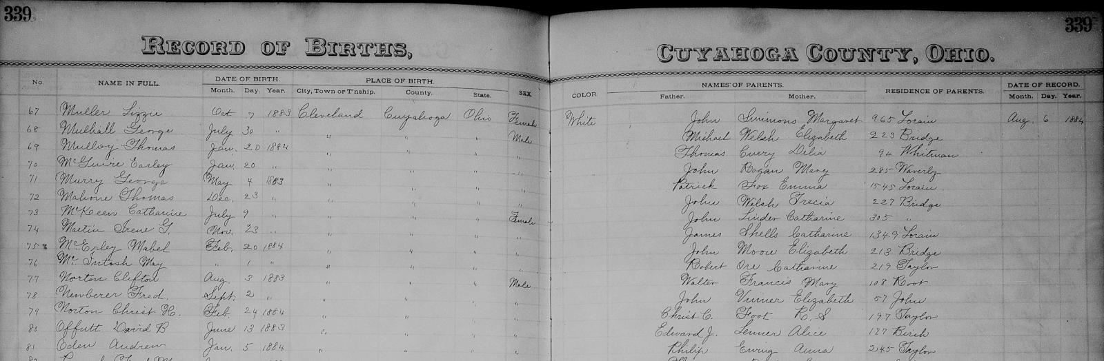 Cuyahoga County Ohiio Birth Register, Volume 5, page 339