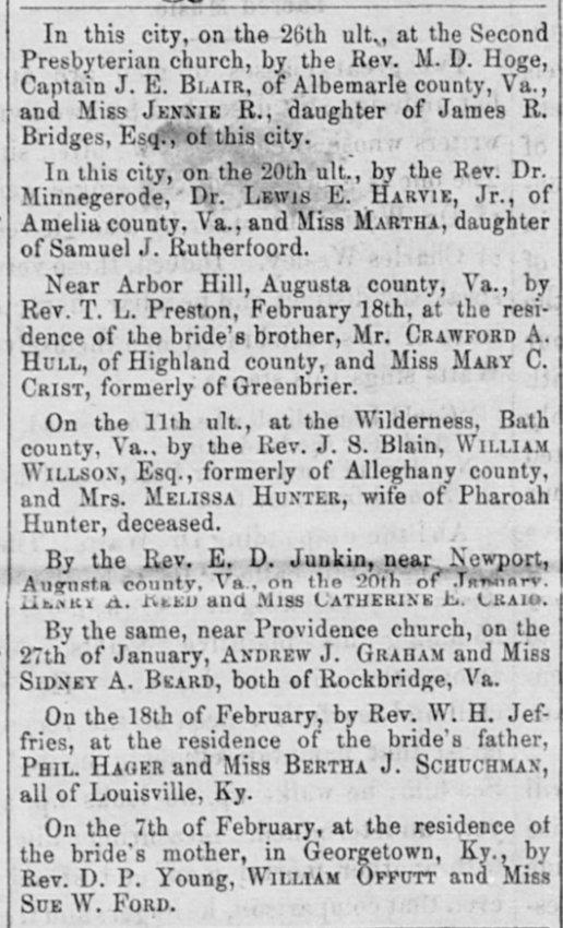 Printed in the Wednesday, March 4, 1868 edition of the Central Presbyterian (Richmond, VA) on page 3.