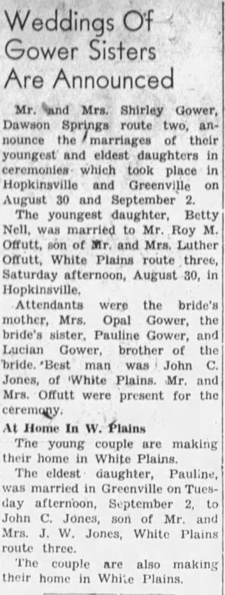 Marriage of Roy M. Offutt & Betty Nell Gower