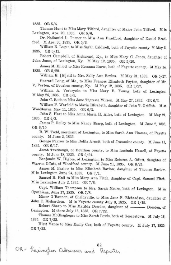 Marriage of Benjamin W. Higbee and Miss Rebecca A. Offutt