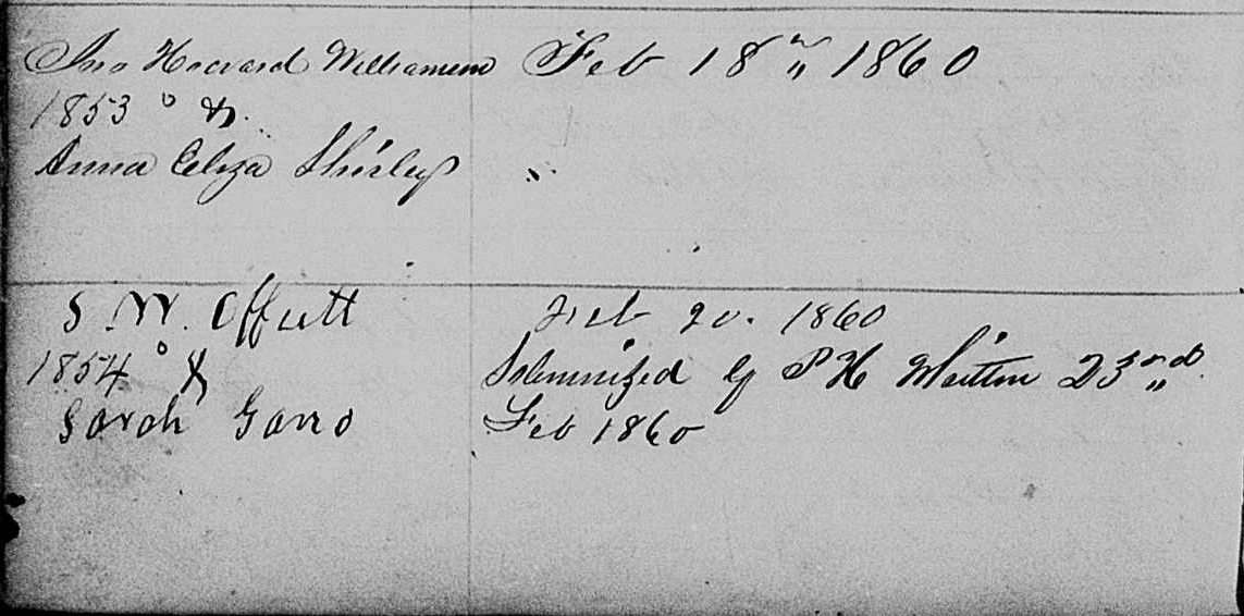 Marriage 1854; S. W. Offutt and Sarah Gano