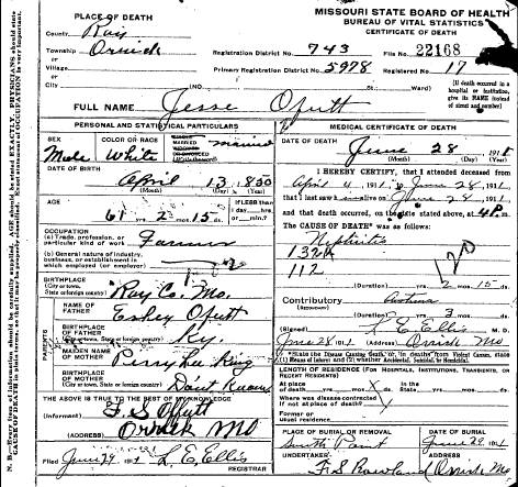 MO Death Certificate for Jesse Offutt