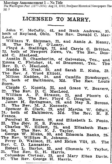 Licensed to Marry; August 31, 1910;The Washington Post, Page 3