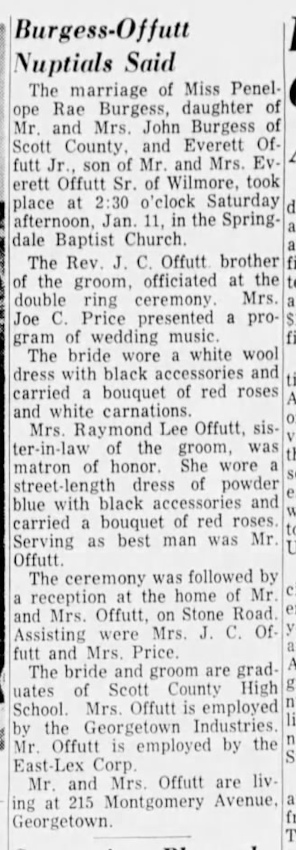 Wedding of Everett Offutt Jr. and Penelope Rae Burgess