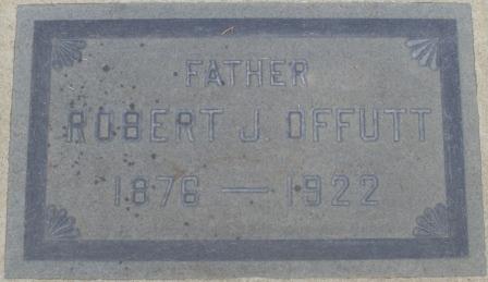 | Children | Son Offutt b. August 21, 1910, d. August 21, 1910Ruth Evelyn Offutt b. August 4, 1911, d. 1980James Thomas Offutt+ b. July 31, 1913, d. 1985Robert Henry Offutt9 b. January 17, 1917, d. March 15, 1917Marion Samuel Offutt+ b. December 22, 1918, d. May 18, 1982Florence Belle Offutt b. November 16, 1920
