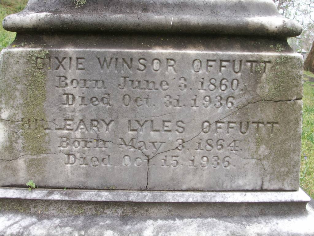 - [S241] Unknown subject Headstone Photo, Personal Library of David W. Offutt, Photo of headstone, provides year only.