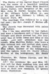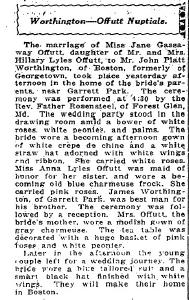 Marriage of Jane Gassaway Offutt and John Platt Worthington