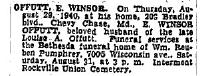 - [S3929] Winchester Evening Star, July 6, 1976, Pg. 20, States that he was the son of Joseph M. and Eliza (Shorbe) Offutt.