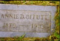 - [S498] Patricia Abelard Anderson, "Montgomery Cty. Hist. Society Report", Cemetery card for Offutt, Marie M., daughter of J. B. and M. J. Offutt. The death date is from cemetery information, only the birthdate is on the headstone.