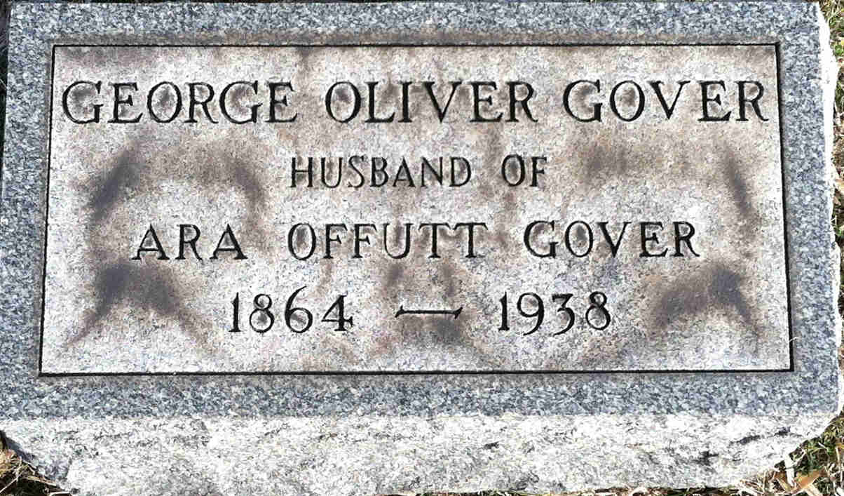 - [S1103] Find A Grave, online http://www.findagrave.com/cgi-bin/fg.cgi, Memorial #101769803. Photo of headstone. "GEORGE OLIVER GOVER Husband of ARA OFFUTT GOVER 1864 - 1938."