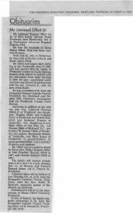- [S6708] The Washington Star, April 24, 1979, Pg. MD7, Printed in the Tuesday, April 24, 1979 edition of The Washington Star on page MD7. "OFFUTT, FLORENCE C. On Saturday, April 21, 1979, at Southern Maryland Hospital Center, beloved wife of the Late Raphael T. Offutt; mother of Margaret Henderson, Cornelia Borden, Mary Robey, and Joseph Offutt; sister of Eulalie Conroy; also survived by eighteen grandchildren and twenty three great-grandchildren. At PUMPHREY COLONIAL FUNERAL HOME, (Rt. 28 off l-270) 300 W. Montgomery ave., Rockville, Md., Tuesday from 3 to 5 and 7 to 9 p.m. Mass of Christian Burial will be offered Wednesday, Apr 25 at 10 a.m. at St Mary's Catholic Church, 520 Viers Mills rd., Rockville, Md. Interment St. Mary's Cemetery."