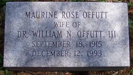 Maurine Rose Robinson was born on September 18, 1915.1 Her married name was Offutt. She married Dr. William Nelson Offutt III, son of Dr. William Nelson Offutt II and Jane Suydam Scott. Maurine Rose Robinson died on December 12, 1993 at Lexington, Fayette County, KY, USA , at age 78.2,1 She was buried on December 15, 1993 at Lexington Cemetery, Lexington, Fayette County, KY, USA