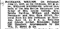 - Frederick Baker Hausmann b. September 21, 1894, d. September 2, 1921