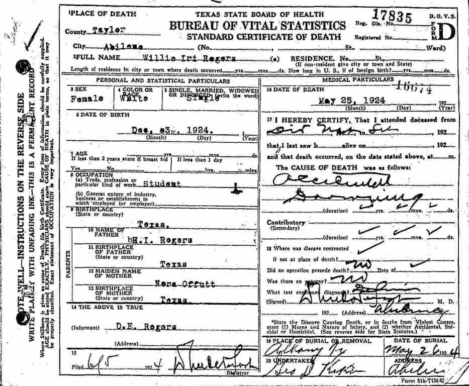 - [S2716] Abilene Reporter-News, May 30, 2010, Provided date and place of burial.