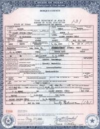 - [S3953] Deming Headlight, Dec. 18, 2012, N.P., Obituary states that he was born February 11, 1921 in Hillsboro, Texas.