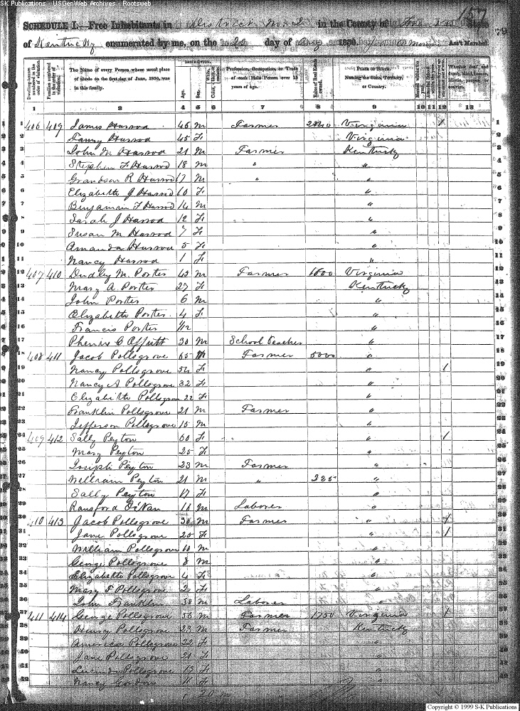 - [S2238] June , 1880 Federal Census, 700 Pennsylvania AVE, NW, Washington, DC, USA, Population Schedule; Georgetown Precinct,Scott County, KY, Household of Nat S. Offutt; lists on line 11 son Harry ?, age 2 born in KY.