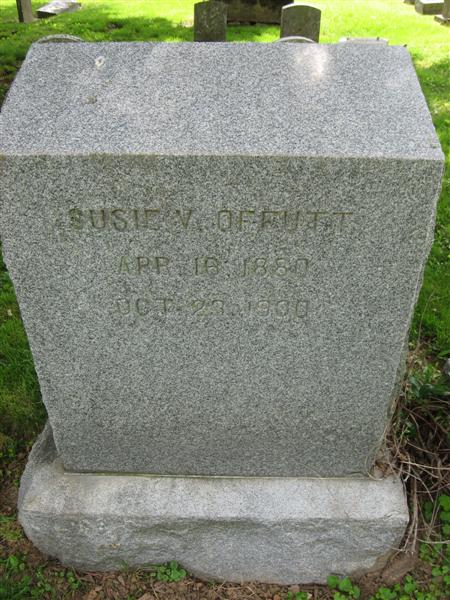 - [S241] Unknown subject Headstone Photo, Personal Library of David W. Offutt, Headstone photo shows date of birth and death. Has name as Susie V. Offutt.