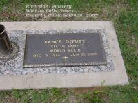 - [S5979] Austin Statesman-American, November 13, 1981, Pg. F22, Printed in the Friday, November 13, 1981 edition of the Austin Statesman-American on page F22. "OFFUTT. Anna W., 90, 1915 Emerald Forest Drive, died Thursday. Services 10 a.m. Saturday at Owens-Drumley Funeral Home in Wichita Falls. Burial, Riverside Cemetery in Wichita Falls. Survivors: daughters, Norma Offutt of Austin, Betty Wheaton of McLean, Va., Jean Humphries of Fresno, Calif: son, Vance Offutt of Wichita Falls."