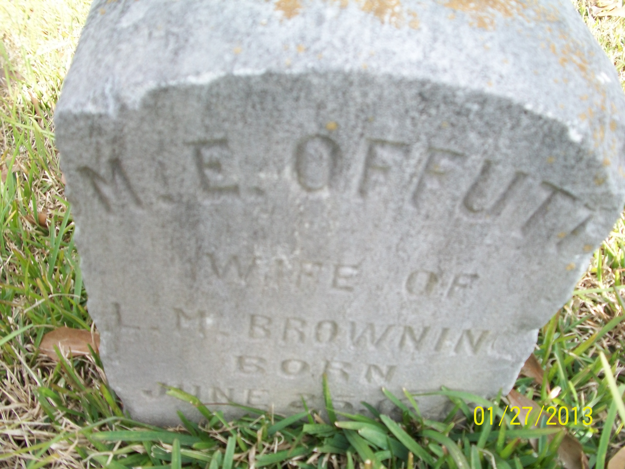 - [S3382] Magnolia Cemetery Burial Records, Burial Records, unknown repository, 502 North Boulevard, Baton Rouge, East Baton Rouge Parish, LA, USA, Lists Ziporah R. (Browning) Offutt as the wife of Alex Offutt. Born December 24, 1851 and died December 21, 1906. Buried in Section 3 Plot 37.