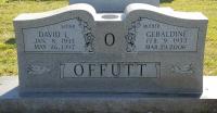 - [S1103] Find A Grave, online http://www.findagrave.com/cgi-bin/fg.cgi, Find A Grave memorial #102269660. Photo of grave marker. "OFFUTT - FATHER DAVID L. JAN. 8, 1933 - MAY 26, 1997; MOTHER GERALDINE FEB. 9, 1933 MAR. 29, 2006."