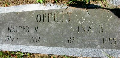 - [S486] Web Site, online unknown url, http://www.southboroughhistory.org/… . Offutt   Walter M. 1882-1962  Ina B. 1881-1955; World War One Veteran flagholder (cemetery records give their full names as Walter Marden Offutt and Ina Brenda [Whitten] Offutt) 1B O.