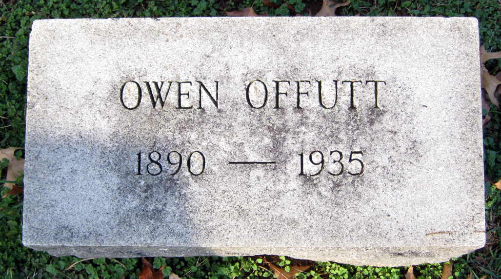 - [S845] Georgetown City Cemetery (KY), online http://www.georgetown-kentucky-cemetery.com/cscemsmain.asp, Lists information on Mr. Owen Offutt, born 1/1/1890 and died 1/1/1935.