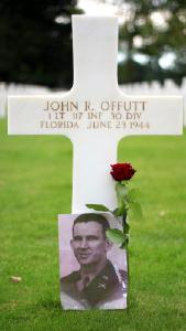 - [S1103] Find A Grave, online http://www.findagrave.com/cgi-bin/fg.cgi, Find A Grave memorial #56648380. Photo of grave marker. "JOHN R. OFFUTT 1 LT 117 INF 30 DIV FLORIDA JUNE 23, 1944."